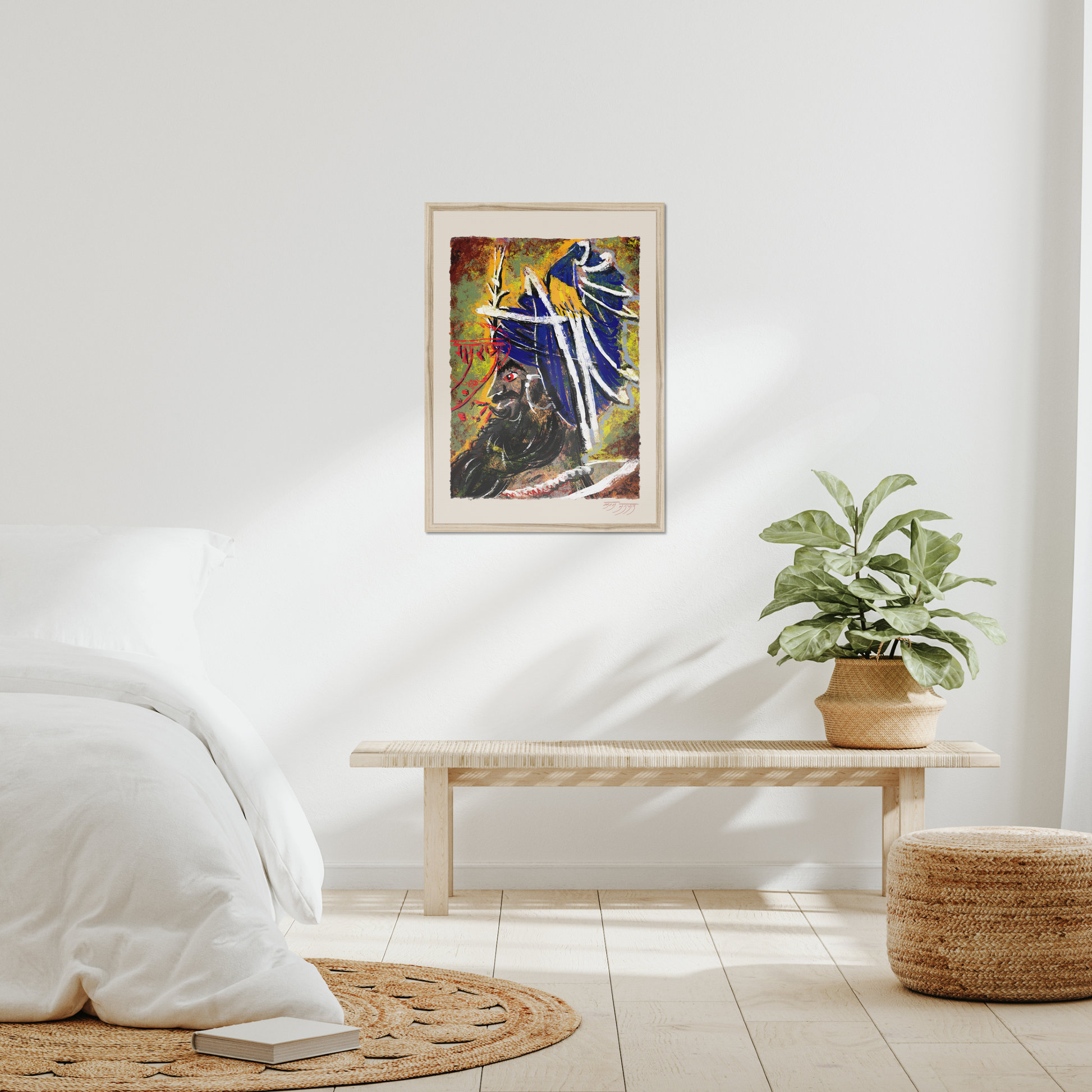 Each mark is both gesture and invocation , a visual echo of the warrior-saint’s inner fire. Printed on museum-grade archival paper or canvas, this piece merges raw physicality with spiritual poise, embodying the eternal rhythm of creation and dissolution.